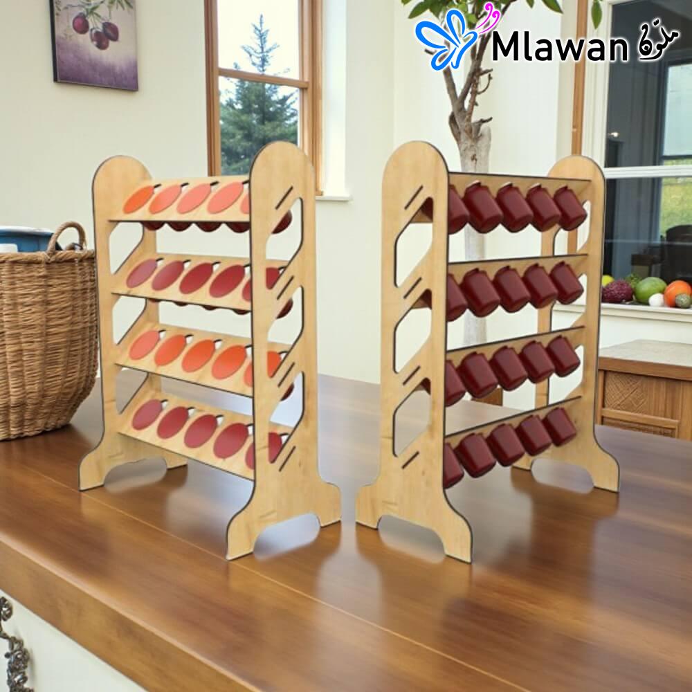 دا حامل الكبسولات من Mlawan فنان، مرتب وشكله حلو في المطبخ، والخشبي للأكواب بعد فكرة ذكية