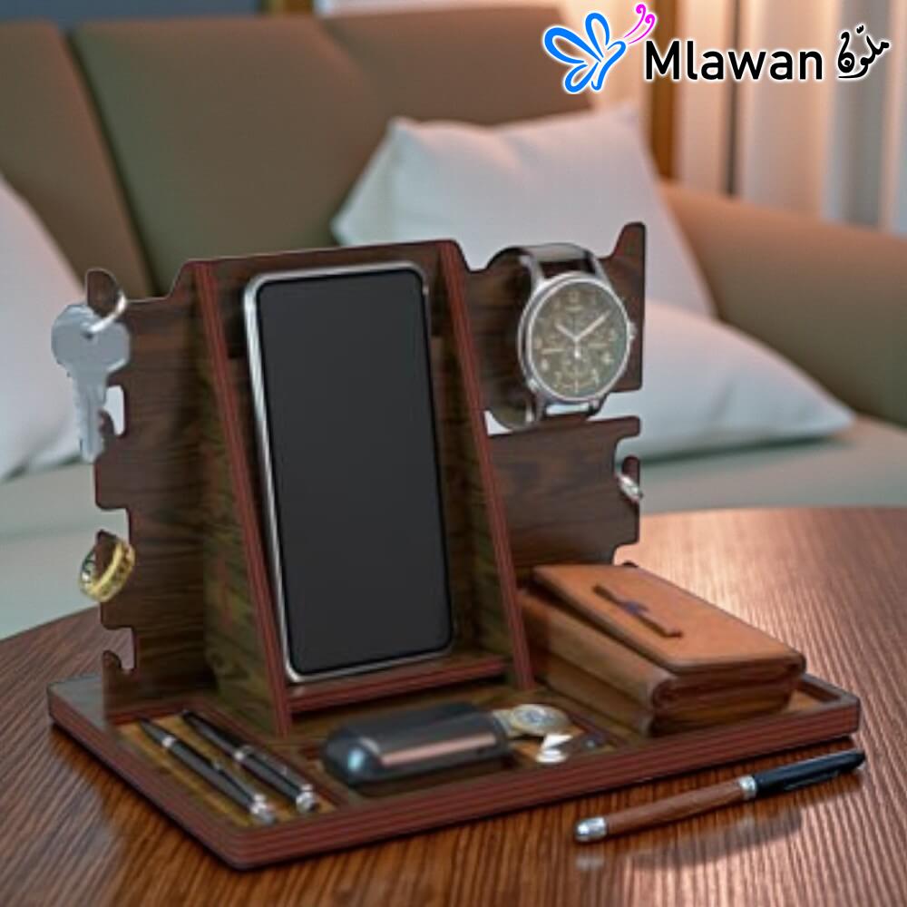 هل تبحث عن هدية عيد ميلاد فاخرة ومميزة للرجل الأنيق في حياتك؟ هل تعبت من فوضى الأسلاك والأجهزة المتناثرة على طاولة مكتبك أو بجانب سريرك؟ إليك الحل الأمثل: حامل الموبايل الخشبي المنظم، محطة شحن جوال خشبية تجمع بين الأناقة والعملية.