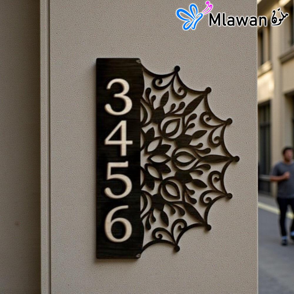 لوحة أرقام منزل بنقشة ماندالا مخصصة تضفي لمسة فنية فريدة على منزلك وتعكس ذوقك. تصميم مخصص، جودة عالية، سهولة التركيب، هدية مثالية، وتعزيز لجاذبية منزلك.