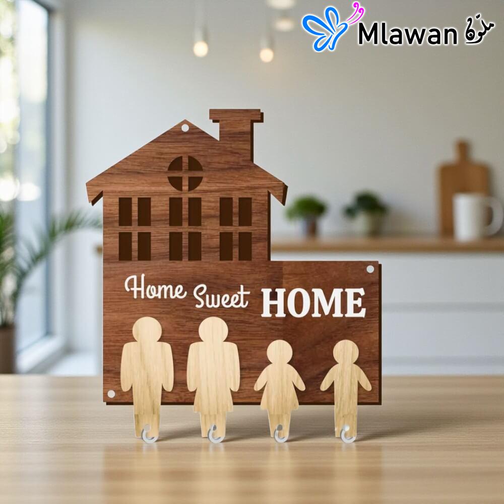 Q: How many keys can this key holder hold? A: The key holder features multiple hooks, providing ample space for several sets of keys, lanyards, and other small items. Consider pairing it with our Wall Mounted Coat Rack for even more entryway organization. Q: Is the key holder easy to install? A: Yes, installation is quick and easy. The key holder comes with all the necessary mounting hardware and instructions. Q: What is the key holder made of? A: The key holder is crafted from high-quality, durable wood for long-lasting use. We also offer similar products in metal; check out our Metal Wall Decor selection. Q: Is this suitable as a housewarming gift? A: Absolutely! This key holder makes a thoughtful and practical housewarming gift. You might also consider our Decorative Trays as part of a larger housewarming gift set. Q: Can I use this key holder in my office? A: Yes, this key holder is versatile and can be used in any space where you need to organize your keys, including your office. It complements various decor styles. For a more modern look, see our Modern Wall Art options. Q: Does the key holder come in arabic? A: Yes. Check it out here: Arabic Decorative Key Holder.