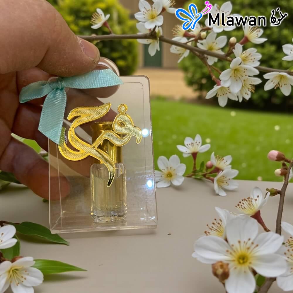 Personalized Acrylic Favor Bags! These elegant bags add a touch of class to any occasion with custom name tags and a crystal-clear presentation. Perfect for small gifts like musk perfume, they’re a memorable keepsake for your guests.
