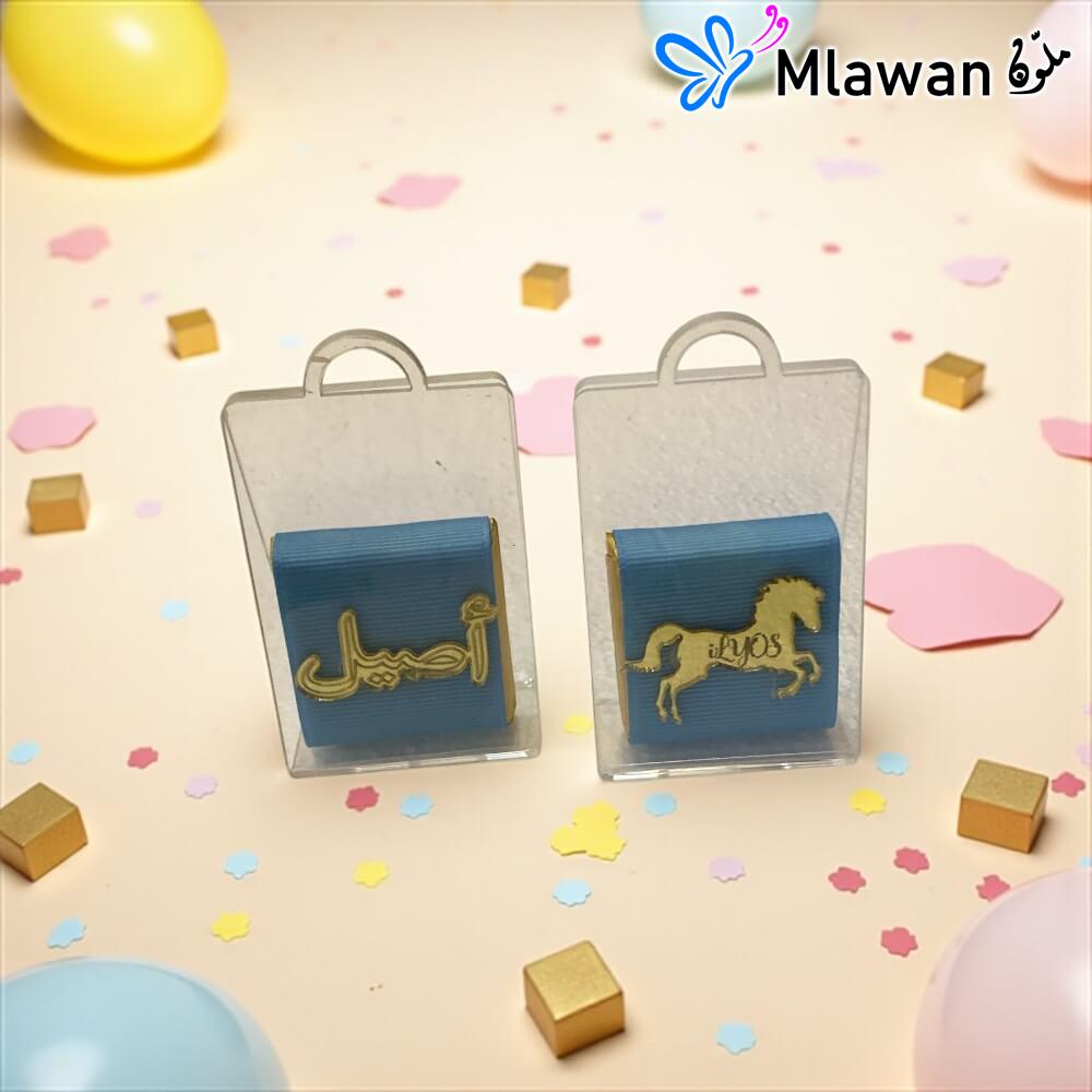 These chic and transparent mini acrylic bags provide a modern and elegant way to present your chocolate favors. Their compact size makes them easy to handle and adds to their overall charm.