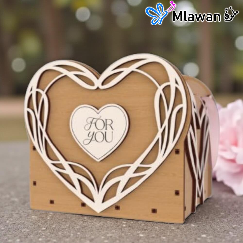 What sets our gift box apart is the ability to personalize it with names, dates, or a short message. Imagine the look on their face when they see their name beautifully engraved on this elegant heart-shaped box. This personal touch transforms a simple gift into a treasured heirloom.