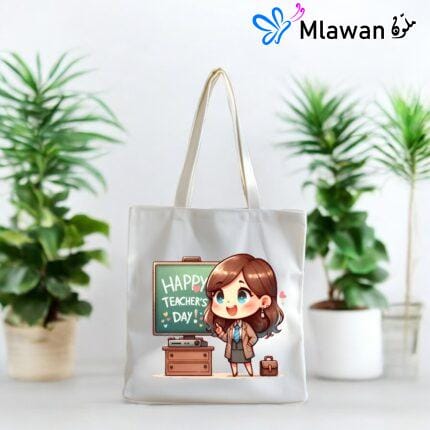 Adorable Happy Teacher’s Day Tote Bag With Cartoon Teacher Design For Gifting